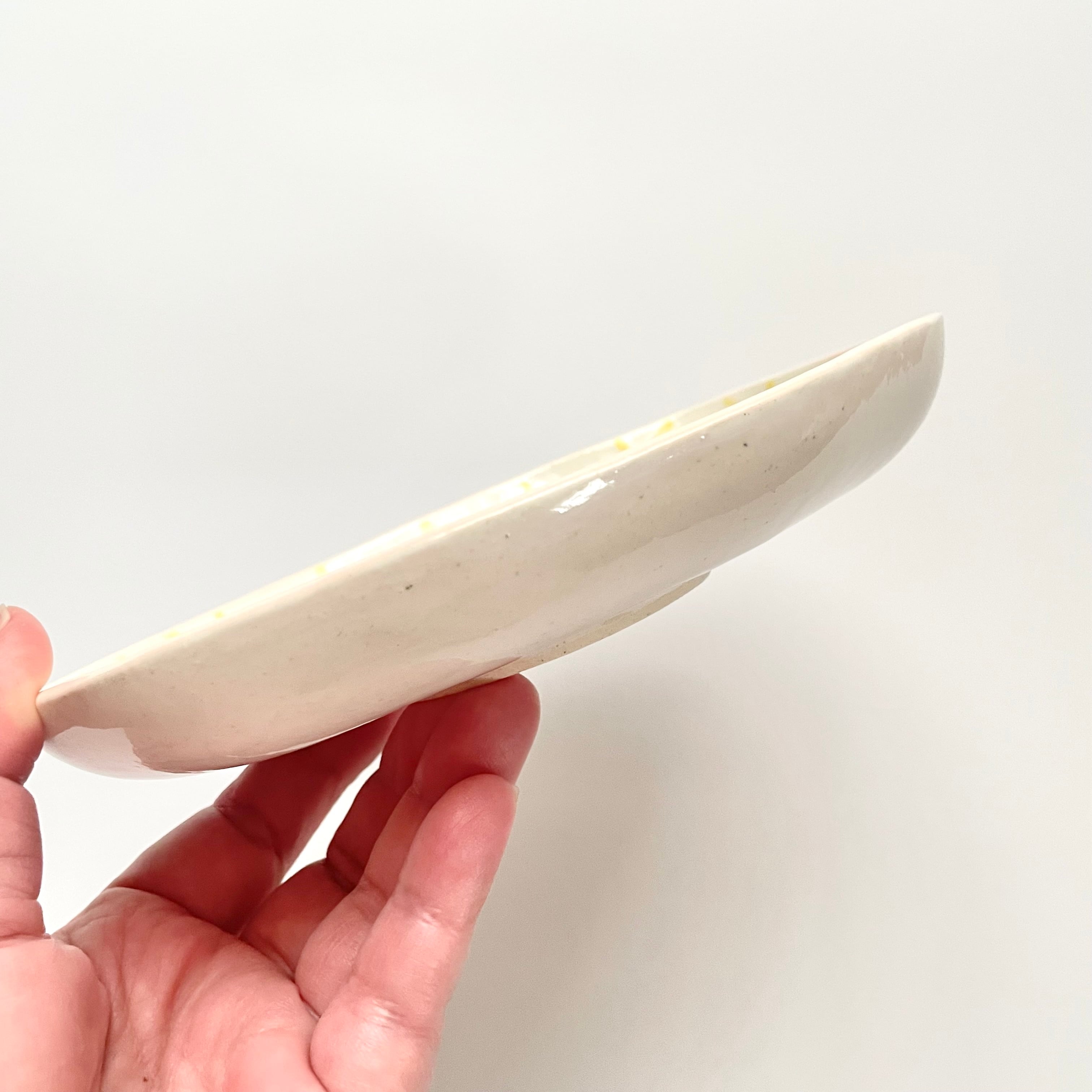 手馴染みの良いオーバル(楕円)型とゆる〜く波打つような縁のラインが温かみを感じさせる、なみなみプレートです。