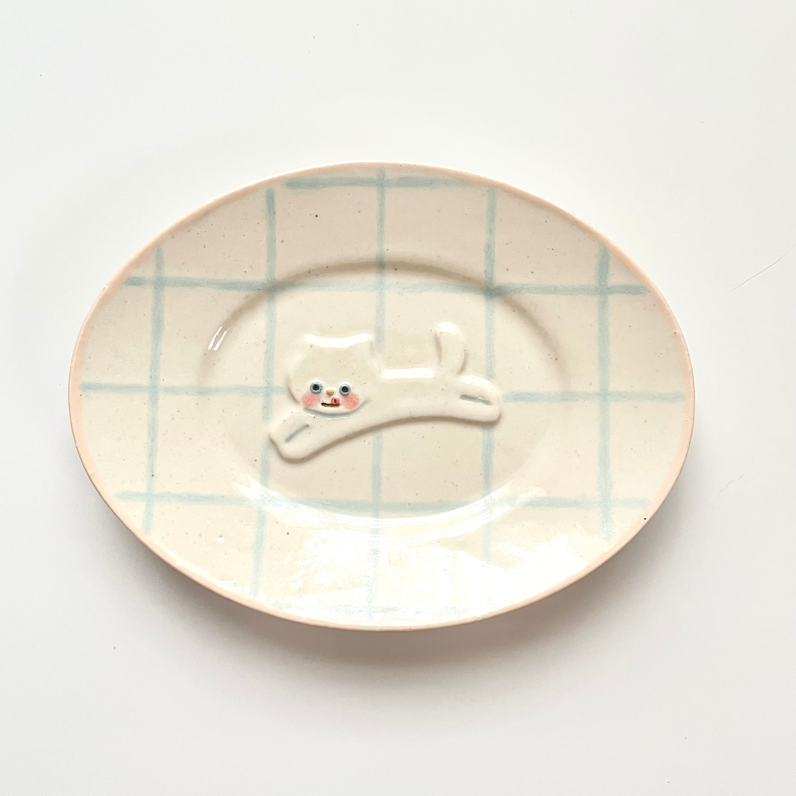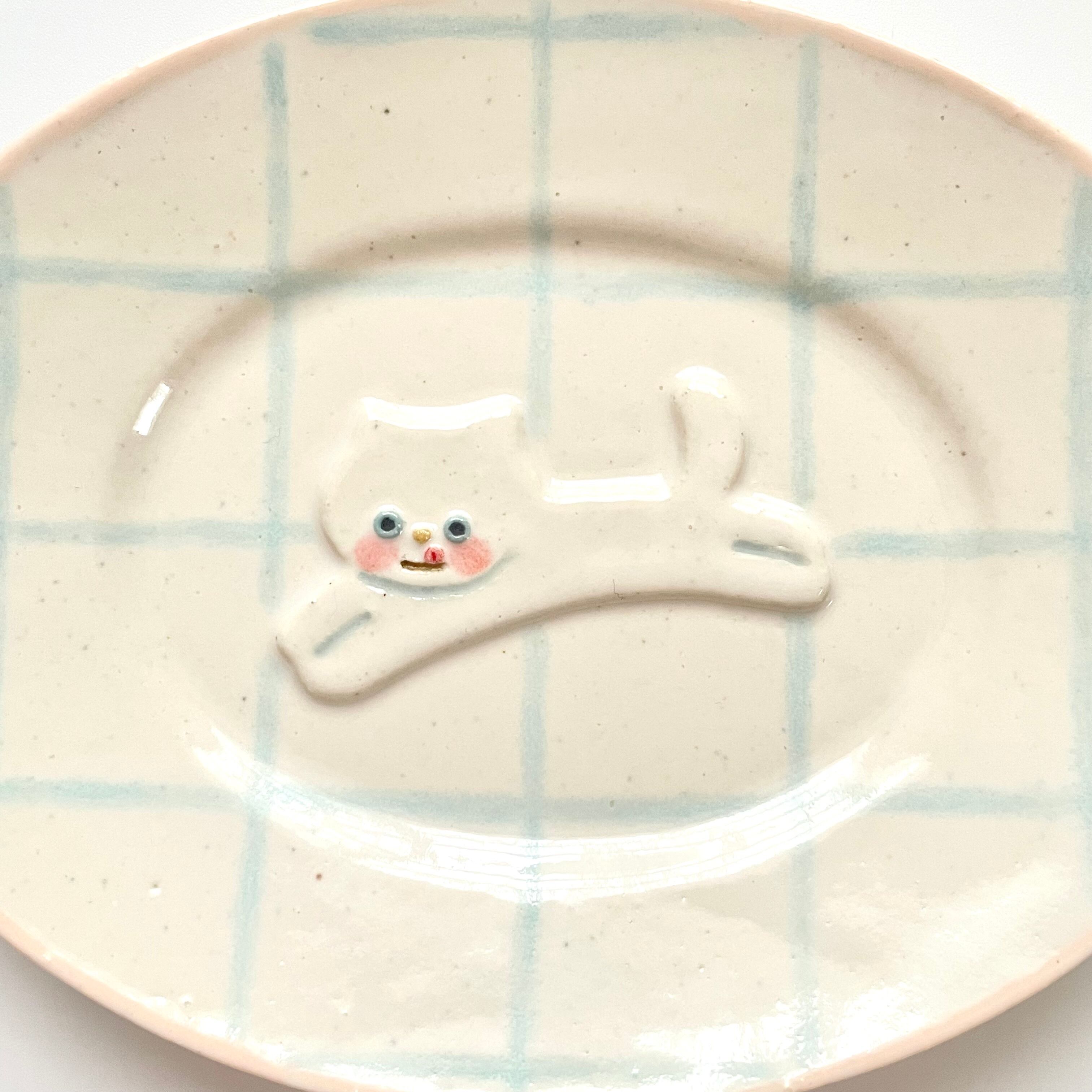 豆皿 -オーバル- 05_白ネコ